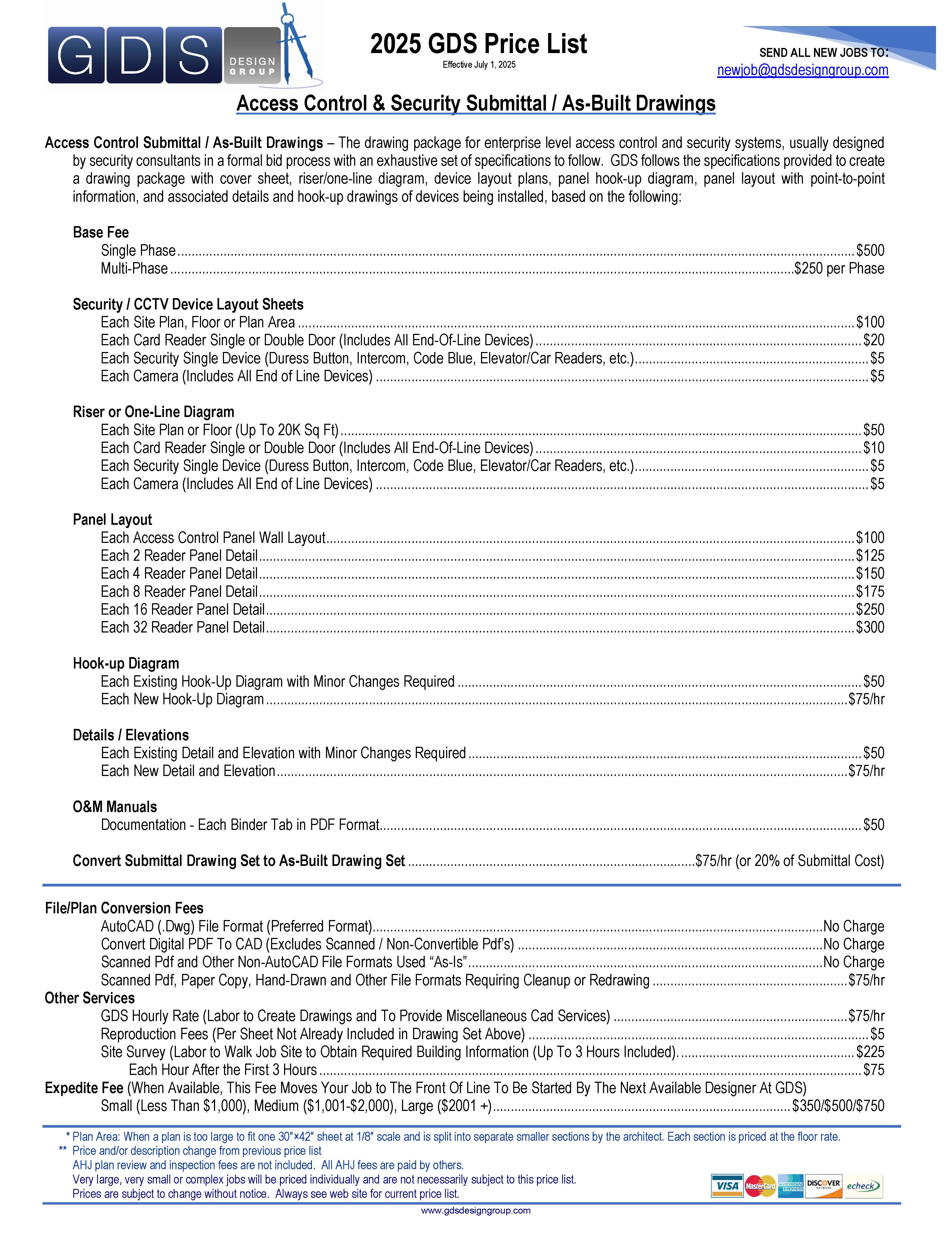 If you have ever been a project manager for an access control company and had to put together a security submittal and as-built drawing package for a security consultant, you know what an exhausting experience this can be. Typically, a security consultant is hired by a large company to design their access control and security system. The consultant puts out a huge document that is difficult to understand, very lengthy and it almost always has unreasonable deadlines. Some companies do not bid on jobs like these because the drawing package seems impossible. At GDS we have done hundreds of security submittal and as-built drawings. Our experience allows us to know what the consultant is looking in your drawing package. We can provide you with a quote for the drawings very quickly. Once authorized to work, we start submittal drawing package in two weeks or less. Our plans are easy to understand and look very professional with your company logo and information on every page. Plans are emailed to you directly and stored online in PDF format. The GDS Vault App allows you and your staff to view drawings anytime from any device.